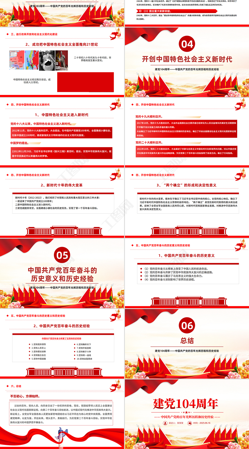 工圖網提供建黨104周年PPT紅色大氣中國共產黨的百年光輝歷程和歷史經驗七一黨課課件供會員免費下載。更多精彩黨課PPT素材,盡在工圖網。
