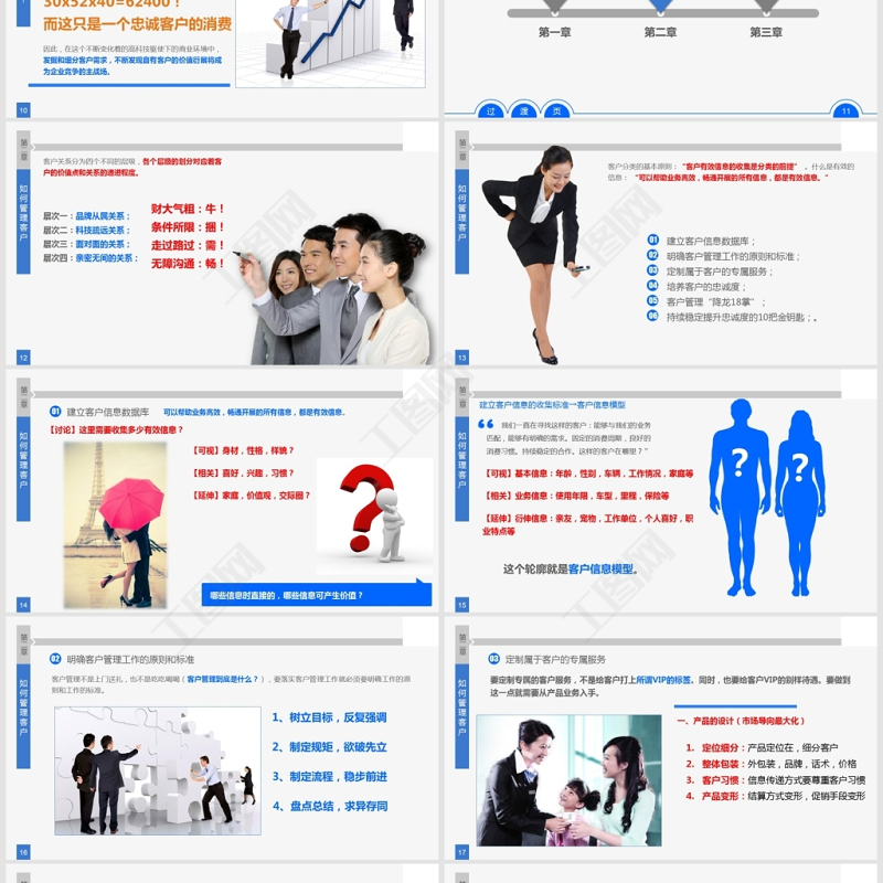 客戶分類的基本原則:“客戶有效信息的收集是分類的前提” 。什么是有效的信息: “可以幫助業務高效,暢通開展的所有信息,都是有效信息。”建立客戶信息數據庫;明確客戶管理工作的原則和標準;定制屬于客戶的專屬服務;培養客戶的忠誠度;客戶管理“降龍18掌”;持續穩定提升忠誠度的10把金鑰匙;。如何管理客戶