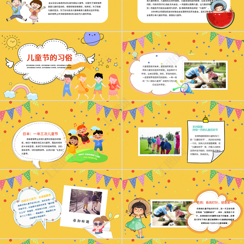 2021可愛黃色卡通61兒童節(jié)六一兒童節(jié)PPT模板