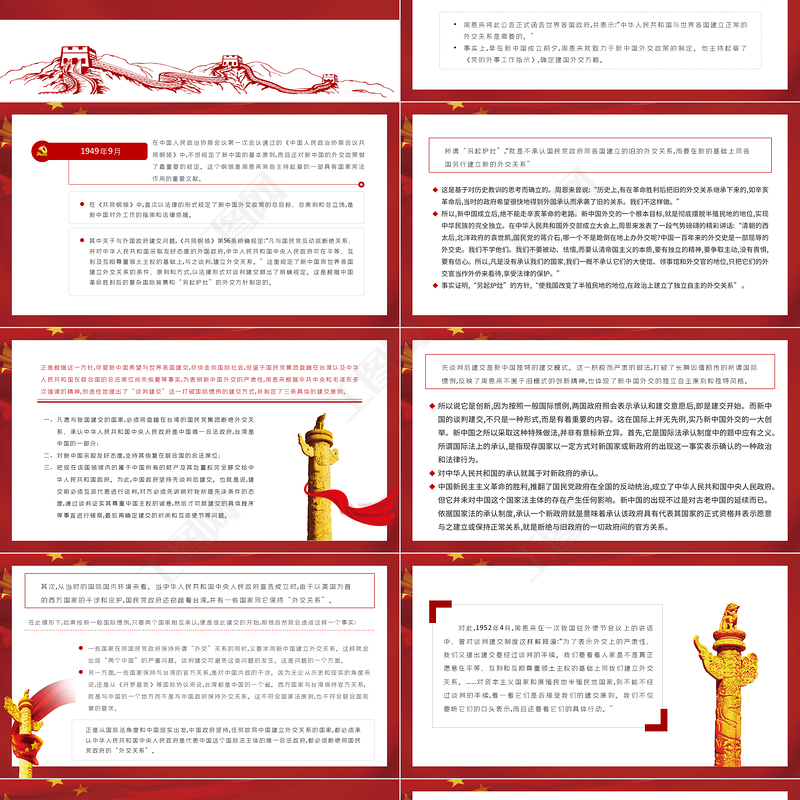 周恩來與新中國的談判建交制度 PPT 紅色 黨政風 新中國獨立自主外交 黨課課件 Array