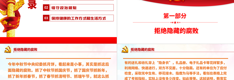 相關領導談黨員干部如何過年PPT紅色大氣風黨員干部反腐倡廉專題黨課課件模板 Array