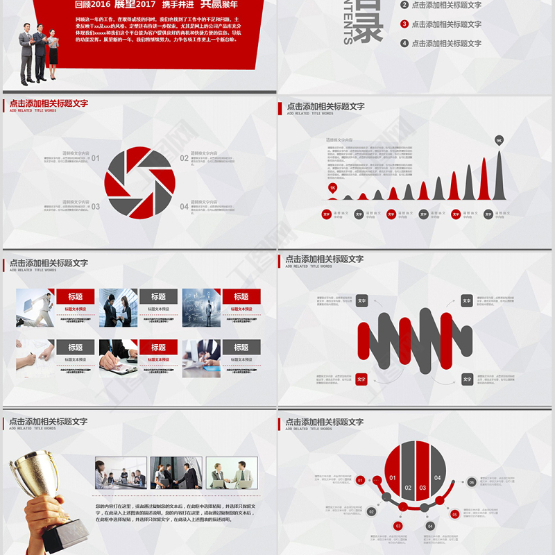 前言QIAN YAN回顧2016 展望2017 攜手并進 共贏猴年回顧這一年的工作,在取得成績的同時,我們也找到了工作中的不足和問題,主要反映于xx及xxx的風格、定型還有待進一步探索,尤其是網上的公司產品庫充分體現我們xxxxx和我們這個平臺能為客戶提供良好的商機和快捷方便的信息、導航的功能發揮。展望新的一年,我們將繼續努力,力爭各項工作更上一個新臺階。