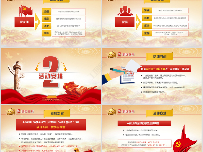 工圖網提供黨支部主題黨日活動策劃方案PPT供會員免費下載。更多精彩黨課PPT素材,盡在工圖網。