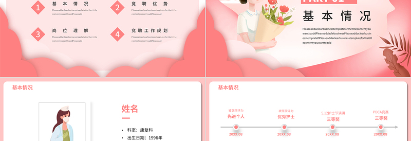 基本情況科室:康復科出生日期:1996年職稱:護師工作經驗:8年入職時間:2020.06學歷:本科畢業學校:XXXXXXXXXX姓名越努力 · 越幸運