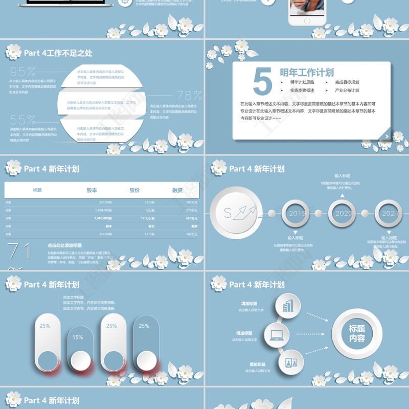 Part 4 新年計劃71%標題數字等都可以通過點擊和重新輸入進行更改,和重新輸入進行更改,頂部“開始”面板中可以對字體、字號、顏色、行距等進行修改。點擊此處添加標題36延時符