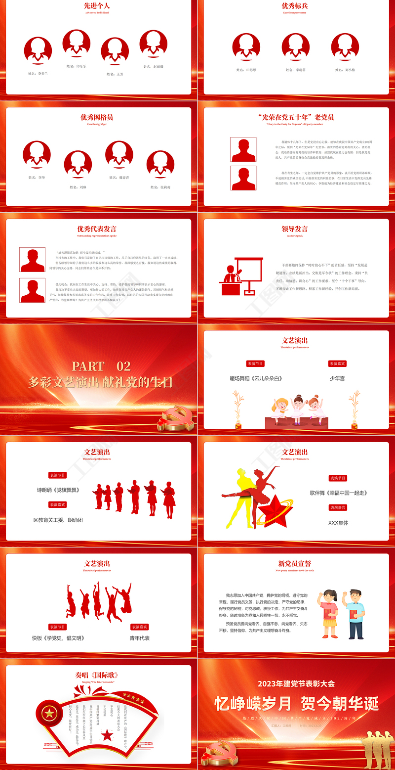 > 模板庫 > 2023憶崢嶸歲月賀今朝華誕PPT紅色精美初心向黨獻(xiàn)禮七一建黨節(jié)黨員表彰大會(huì)建黨102周年模板.PPTX 【圖片、文字、動(dòng)畫均可編輯】