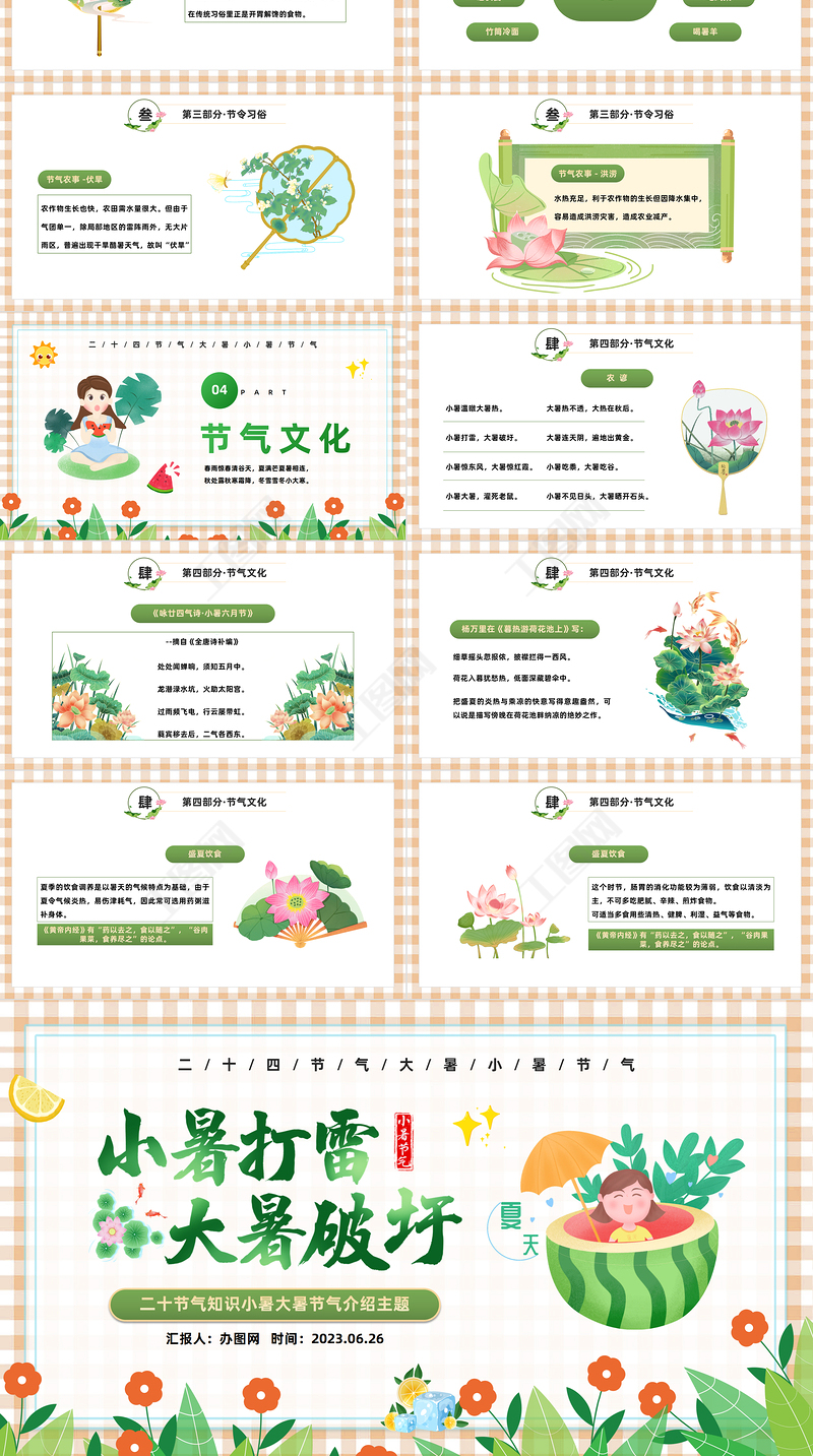 2023小暑打雷大暑破圩PPT中國風中國傳統(tǒng)節(jié)氣二十四節(jié)氣之大暑小暑專題課件模板 Array