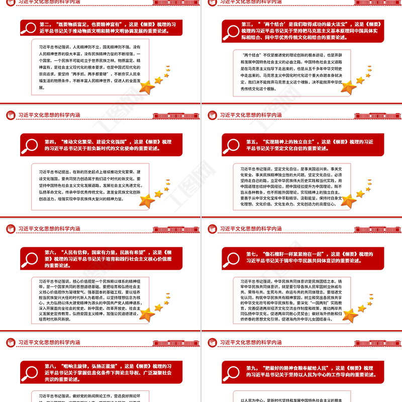 工圖網(wǎng)提供學(xué)習(xí)好使用好《習(xí)近平文化思想學(xué)習(xí)綱要》專(zhuān)題PPT課件供會(huì)員免費(fèi)下載。更多精彩黨課PPT素材,盡在工圖網(wǎng)。