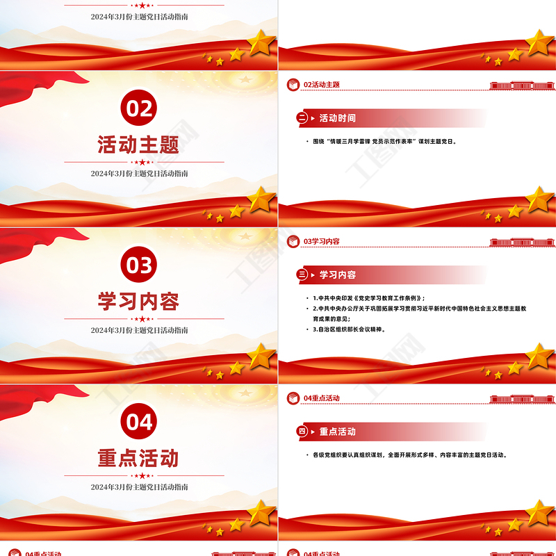 04重點活動重點活動各級黨組織要認真組織謀劃,全面開展形式多樣、內容豐富的主題黨日活動。