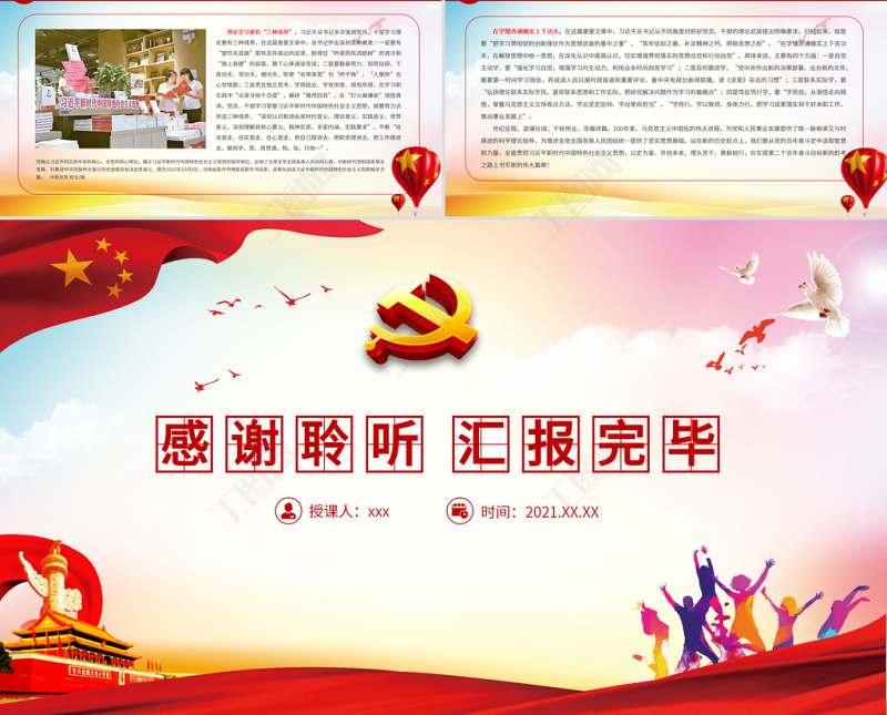 思想建黨 理論強黨 PPT 紅色 質感 高揚新時代中國共產黨人的思想旗幟 黨員干部思想教育 黨課 Array