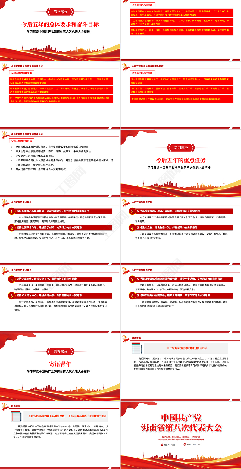 工圖網(wǎng)提供紅色黨建風(fēng)中國(guó)共產(chǎn)黨海南省第八次代表大會(huì)專題黨課PPT課件模板供會(huì)員免費(fèi)下載。更多精彩黨課PPT素材,盡在工圖網(wǎng)。