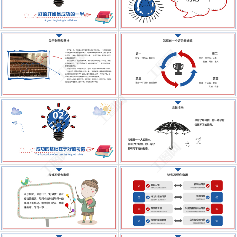 工圖網提供卡通藍色紅色開學第一課課堂如何收心PPT供會員免費下載。更多精彩黨課PPT素材,盡在工圖網。
