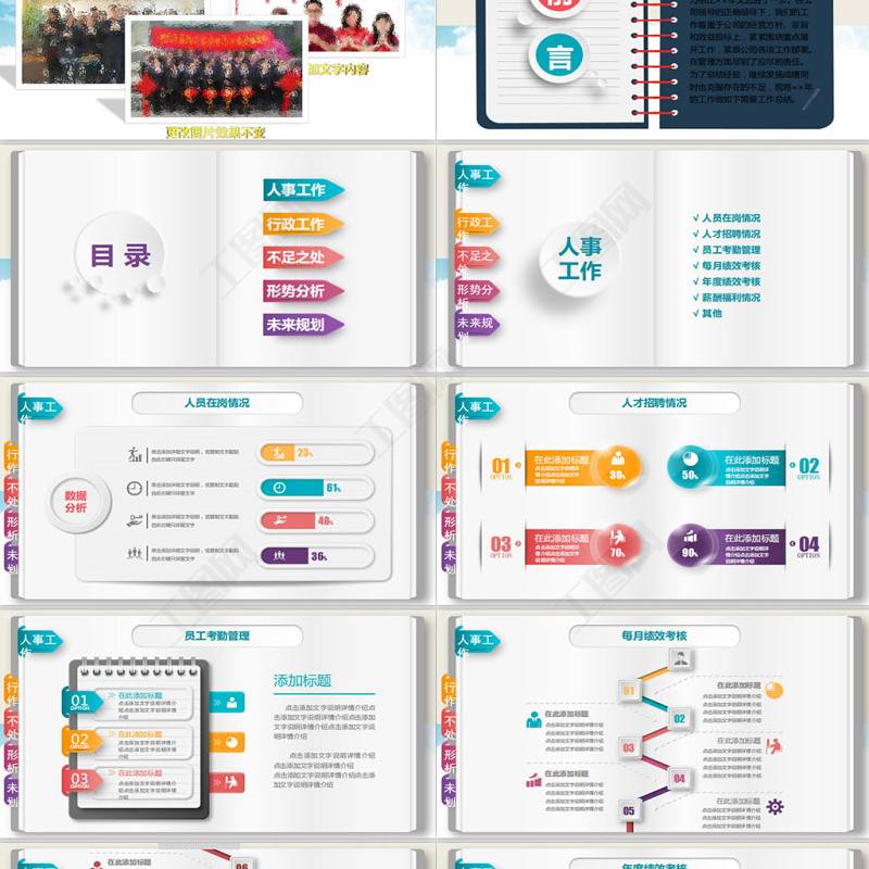 2018 狗年 新年 年度 月度 年中 年終 工作 季度 計劃 匯報 報告 總結 企業 公司 部門 人事 營銷 商務 辦公 行政 PPT 動態 視頻 述職 崗位 競聘 素材 簡約 翻書 便簽 背景 創新 模板 書本 書本模板 人事部 行政部 Array