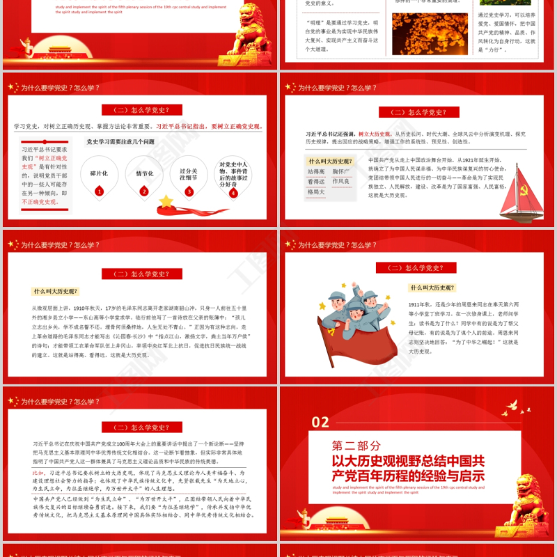 工圖網提供紅色莊嚴以大歷史觀重溫中國共產黨的百年歷程的經驗與啟示黨史學習黨課課件供會員免費下載。更多精彩黨課PPT素材,盡在工圖網。