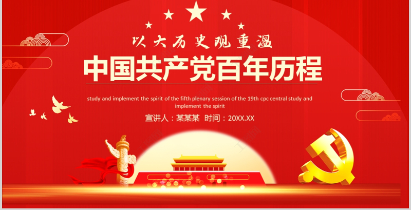 中國共產黨百年歷程study and implement the spirit of the fifth plenary session of the 19th cpc central study and implement the spirit宣講人:某某某 時間:20XX.XX