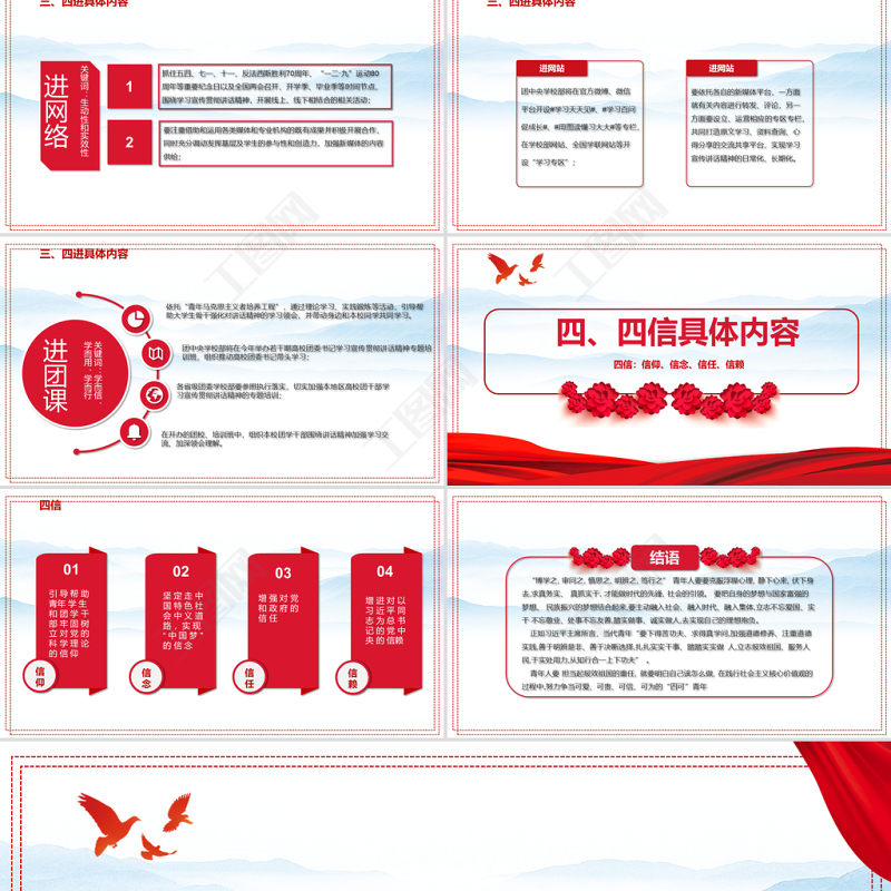 四進(jìn)四信四進(jìn)四信進(jìn)網(wǎng)絡(luò)進(jìn)團(tuán)課進(jìn)支部進(jìn)社團(tuán)信仰信念信任信賴