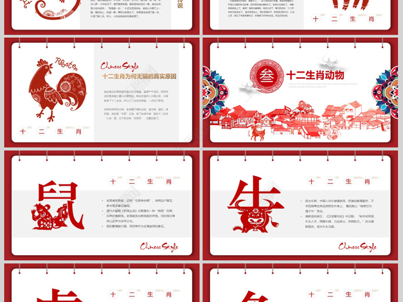 原創剪紙中國風十二生肖中國傳統文化PPT模板-版權可商用