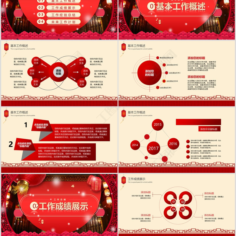 2023簡潔喜慶年終工作總結工作匯報PPT模板包含