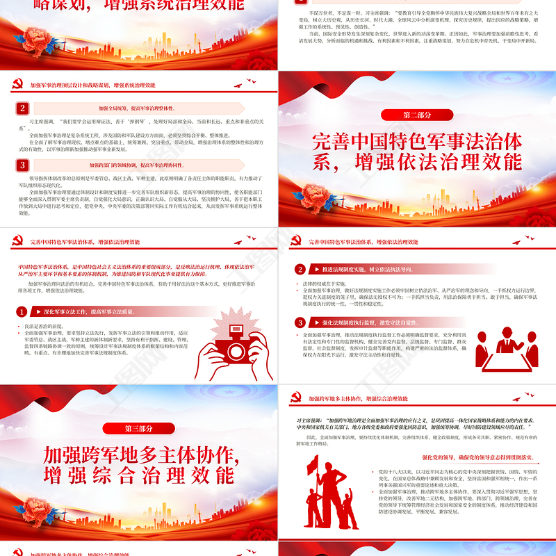 工圖網提供2023全面加強軍事治理增強軍事治理效能PPT大氣精美風黨員干部學習教育專題黨課課件供會員免費下載。更多精彩黨課PPT素材,盡在工圖網。
