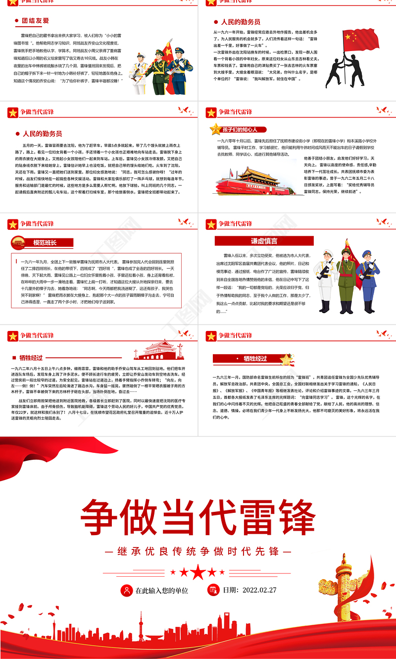 工圖網提供爭做當代雷鋒PPT紅色黨政風繼承優良傳統爭做時代先鋒專題黨課課件模板下載供會員免費下載。更多精彩黨課PPT素材,盡在工圖網。