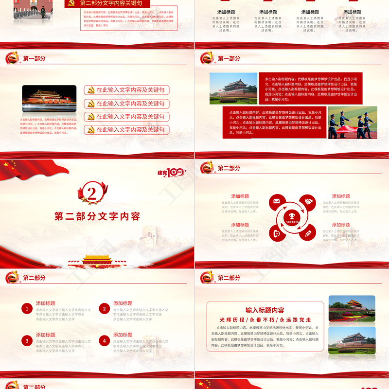 光輝歷程/永垂不朽/永遠跟黨走 點擊輸入副標題內容,此模板是由夢想稀飯設計出品,我是小河北,點擊輸入副標題內容,此模板是由夢想稀飯設計出品,我是小河北,點擊輸入副標題內容,此模板是由夢想稀飯設計出品,我是小河北;點擊輸入副標題內容,此模板是由夢想稀飯設計出品,我是小河北。輸入標題內容第二部分