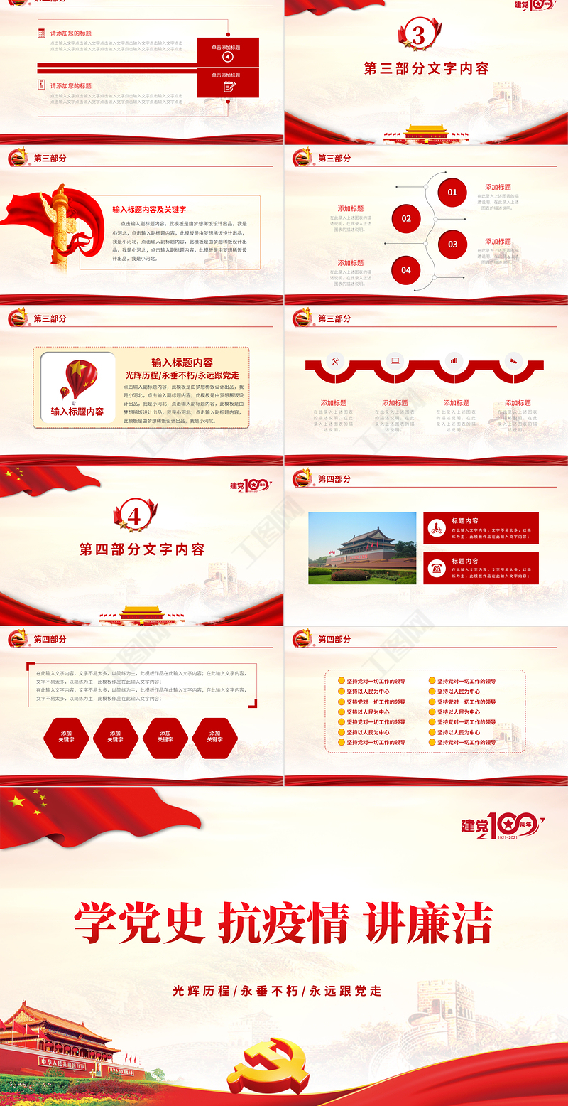 黨政建設匯報模板光輝歷程/永垂不朽/永遠跟黨走學黨史 抗疫情 講廉潔