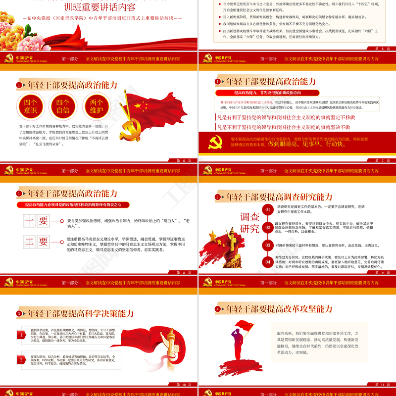 中央黨校(國家行政學院)中青年干部培訓班開班式上發表重要講話,中青年干部培訓班,年輕干部,重要講話,領導干部要提升七種能力,七種能力,黨校,中央黨校,黨支部,黨委,微黨課,講話,黨建,主題當日,三會一課,紅色,政治能力、調查研究能力、科學決策能力、改革攻堅能力、應急處突能力、群眾工作能力、抓落實能力,勇于直面問題,想干事、能干事、干成事,不斷解決問題、破解難題 Array