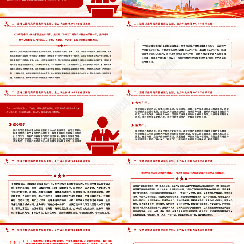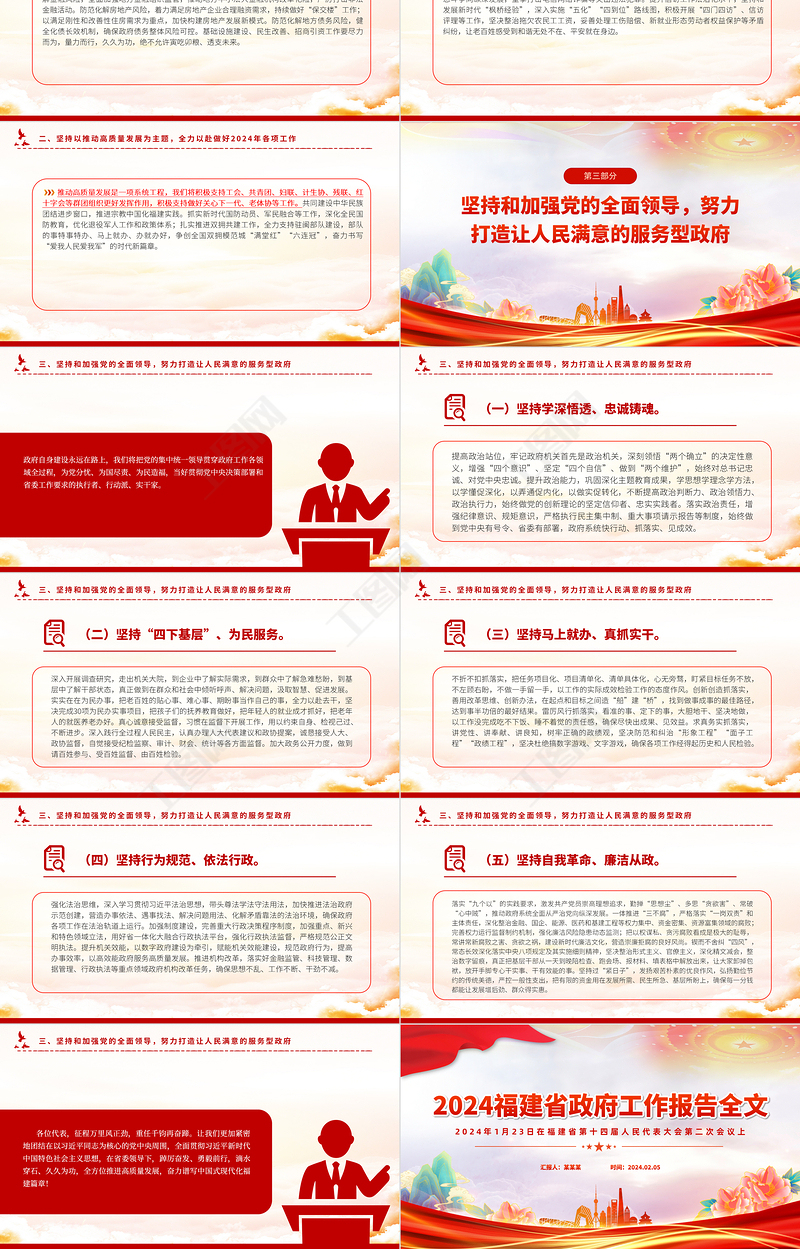 2024福建省政府工作報告全文PPT紅色精美黨政機關工作匯報課件 Array