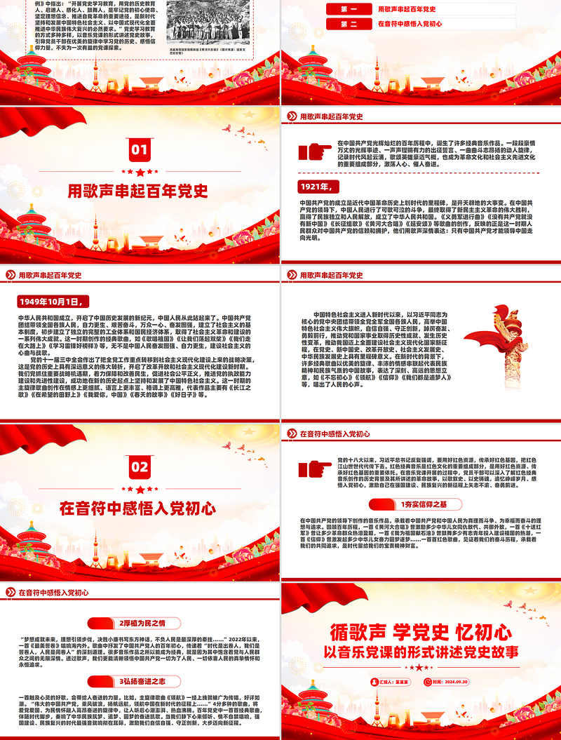 循歌聲學(xué)黨史憶初心PPT大氣精美以音樂(lè)黨課的形式講述黨史故事課件 Array