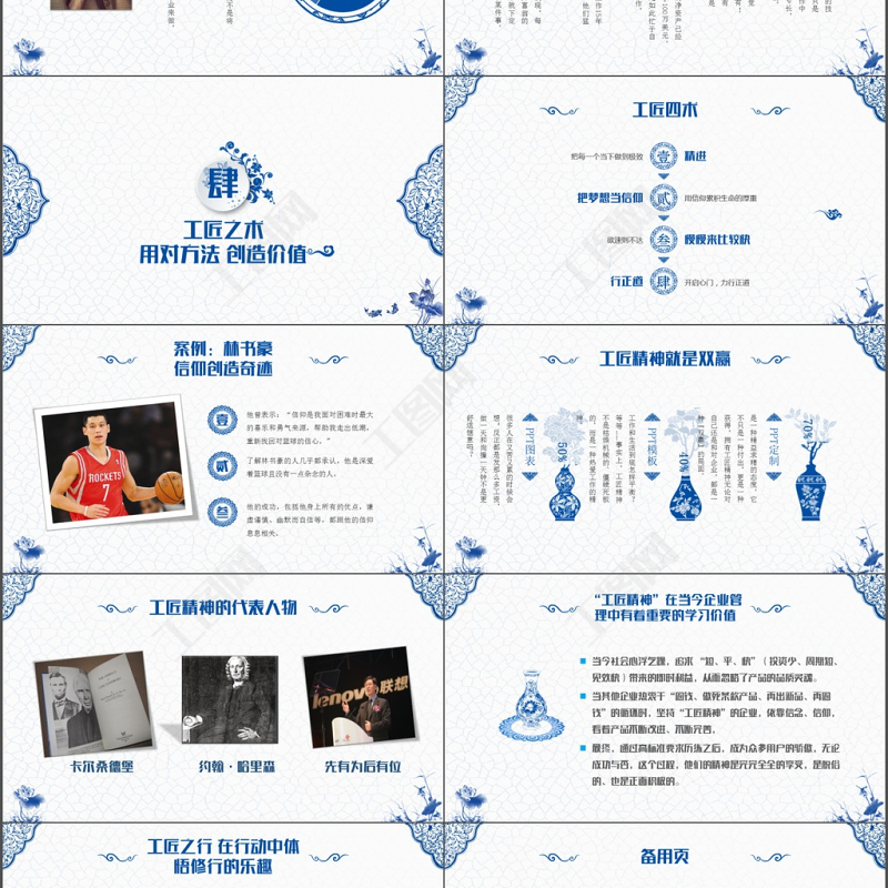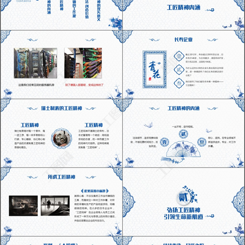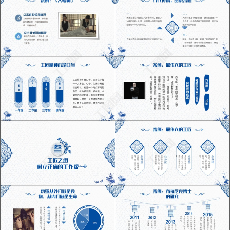 2017藍色青花瓷工匠精神黨課ppt模板 Array