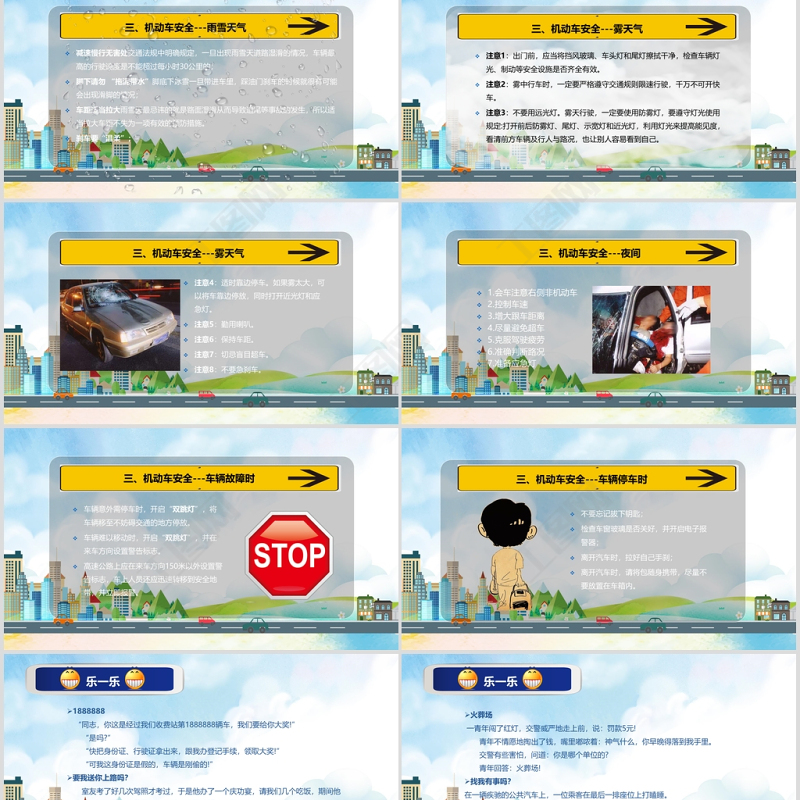 三、機動車安全---車輛停車時不要忘記拔下鑰匙;檢查車窗玻璃是否關好,并開啟電子報警器;離開汽車時,拉好自己手剎;離開汽車時,請將包隨身攜帶,盡量不要放置在車箱內。