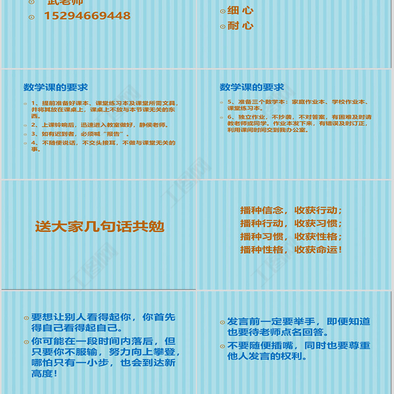 開學第一課 開學季 數學課PTP 開學PPT 教師自我介紹PPT 小學PPT 通用PPT 幼兒園PPT 藍色PPT 卡通PPT Array