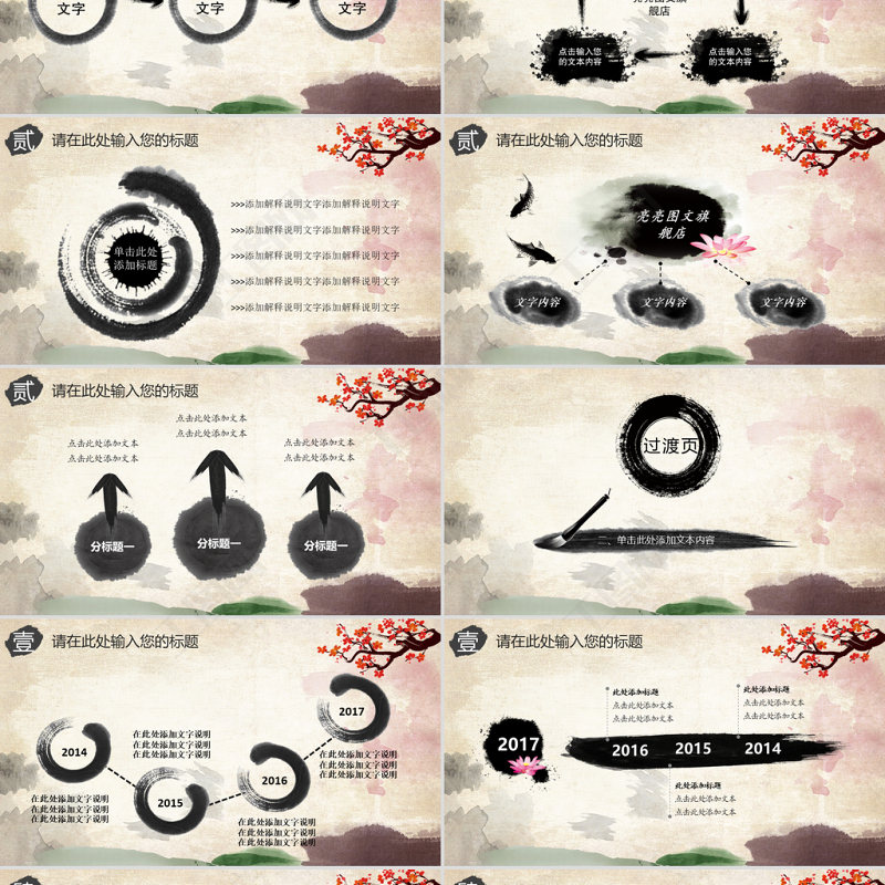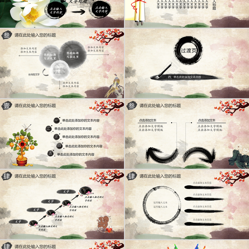 綠色山水畫背景中國風中國傳統(tǒng)文化動態(tài)PPT模版包含