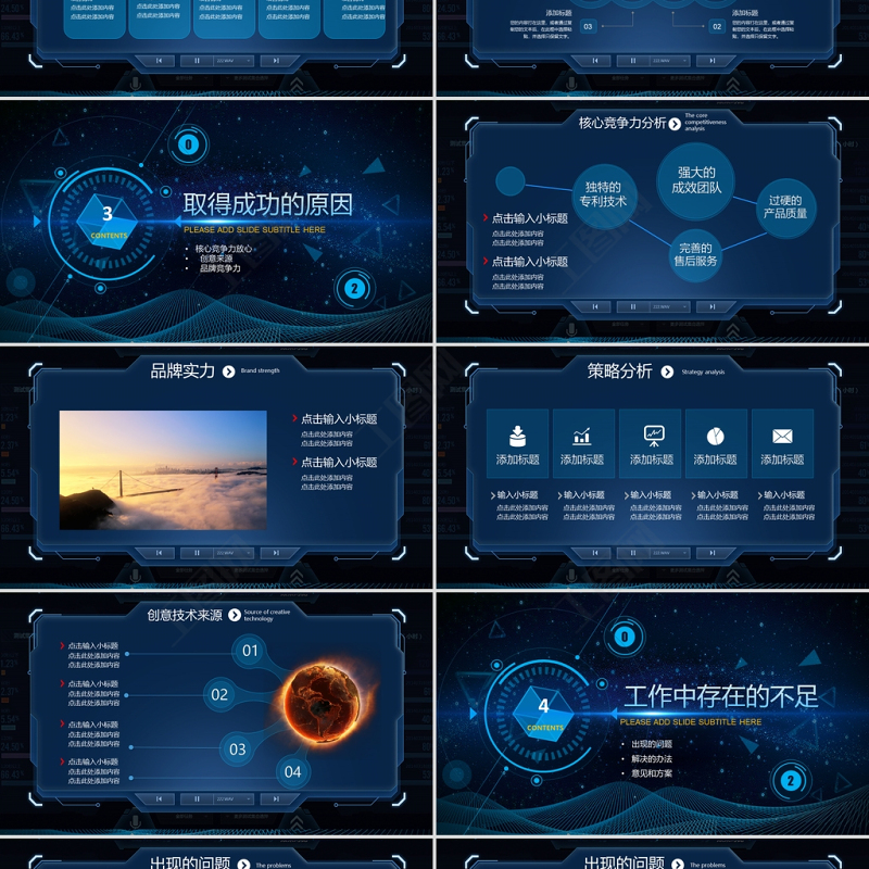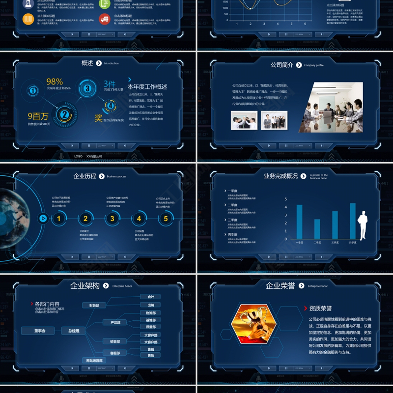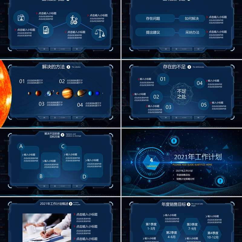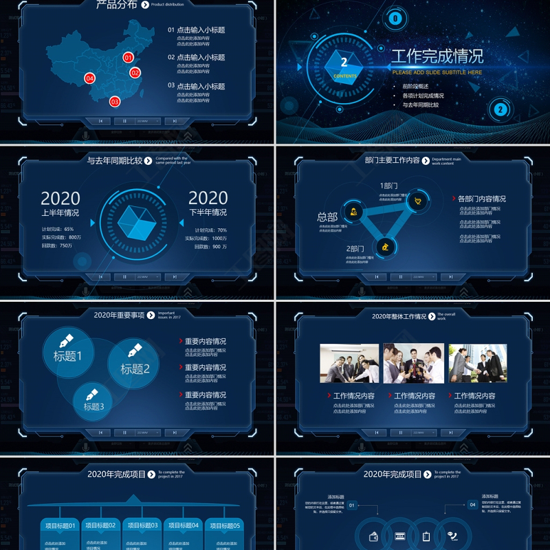2021年終總結ppt精美藍色互聯網公司科技感工作計劃模板