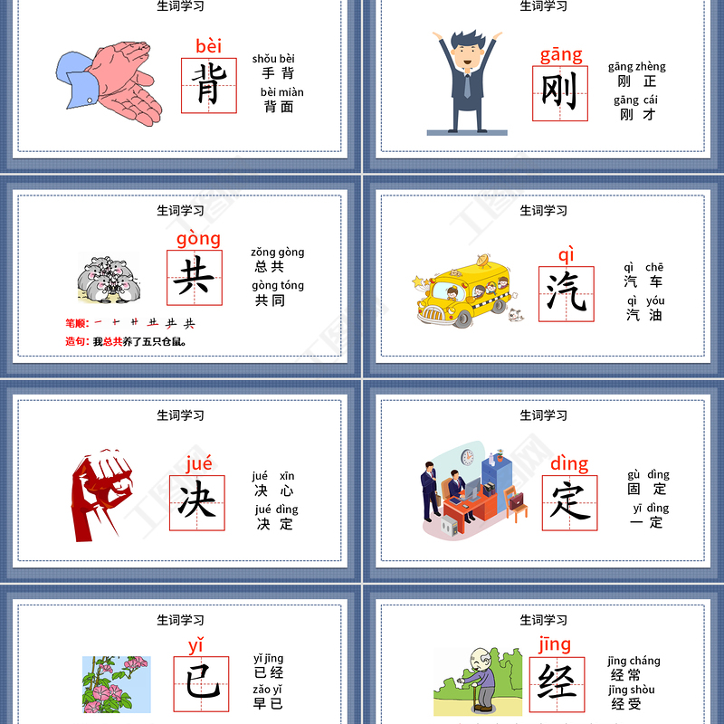 生詞學習ɡònɡzǒnɡ ɡònɡ 總 共ɡònɡ tónɡ 共 同造句:我總共養了五只倉鼠。筆順: