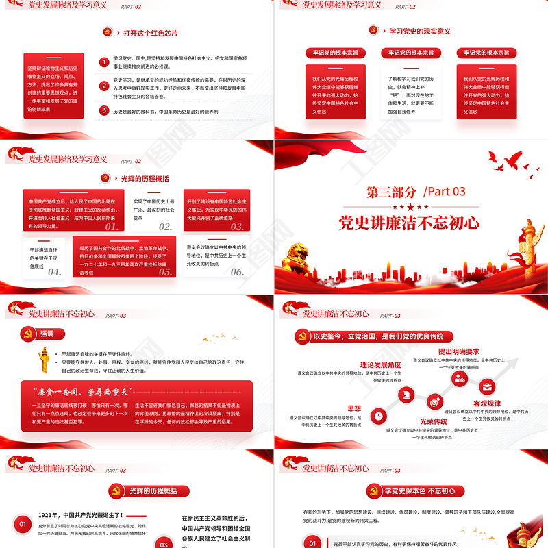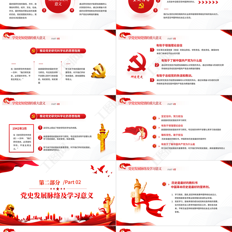 工圖網提供學黨史跟黨走PPT紅色大氣風黨員干部學習教育專題黨課課件模板供會員免費下載。更多精彩黨課PPT素材,盡在工圖網。