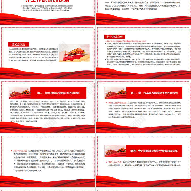 中國共產黨對外工作的主要原則述評PPT紅色黨政風黨員干部學習教育專題黨課