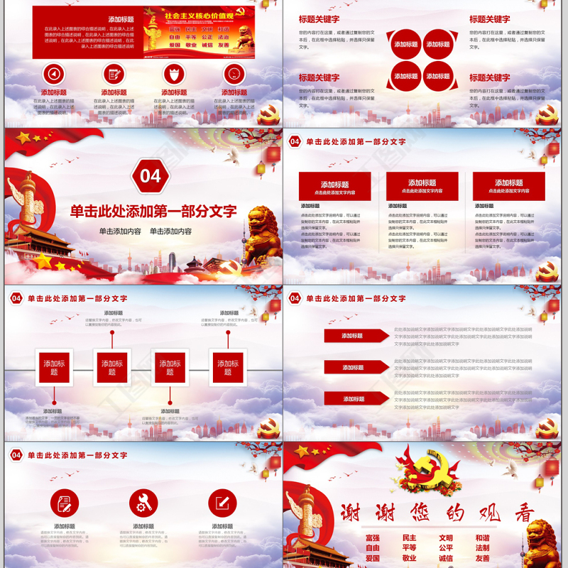社會主義核心價值觀PPT模板 Array