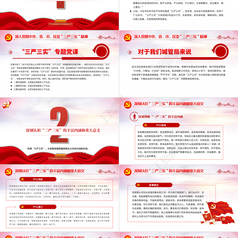 2021三嚴三實PPT 紅色大氣 城管局 抓好落實 三嚴三實 爭做忠誠干凈擔當的好干部 專題教育 黨課 黨支部 黨組 黨校 黨建 黨課 課件 中心組學習 黨員 干部 兩學一做 做合格黨員 十九大內容 黨政 三嚴三實 嚴以修身 嚴以用權 嚴以律己 謀事要實 創業要實 做人要實 Array