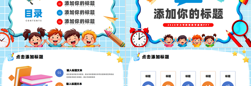 教育教學PPT卡通創意風中小學生說課教學班會通用模板