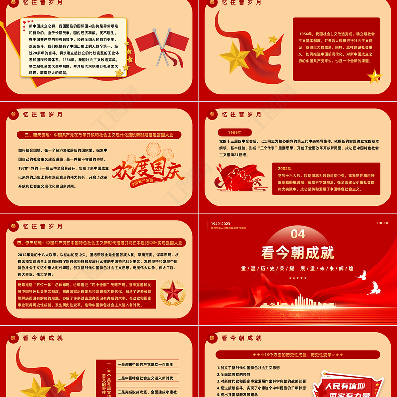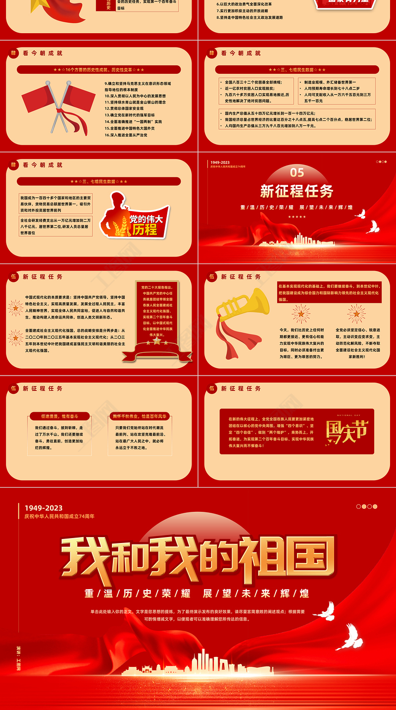 2023我和我的祖國PPT紅色大氣風(fēng)重溫歷史榮耀展望未來輝煌熱烈慶祝新中國成立74周年專題課件模板下載 Array