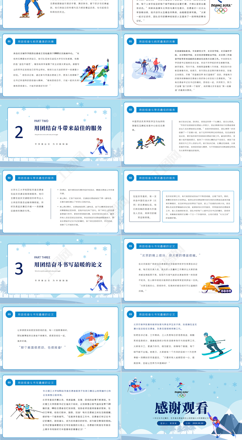 冬奧志愿者團結奮斗書寫青春論文PPT清新簡約風2022年北京冬奧會專題黨課課件模板