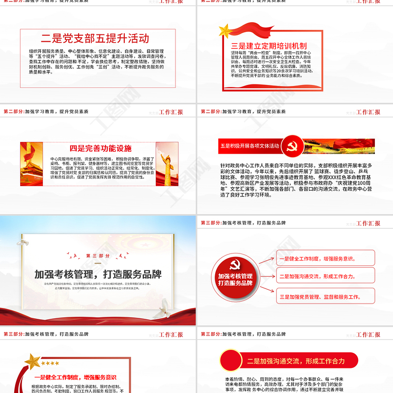 工圖網(wǎng)提供2022黨支部工作匯報PPT紅色黨政風黨支部黨組織黨建工作總結(jié)匯報專題黨課課件供會員免費下載。更多精彩黨課PPT素材,盡在工圖網(wǎng)。
