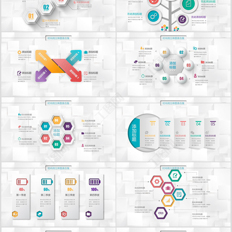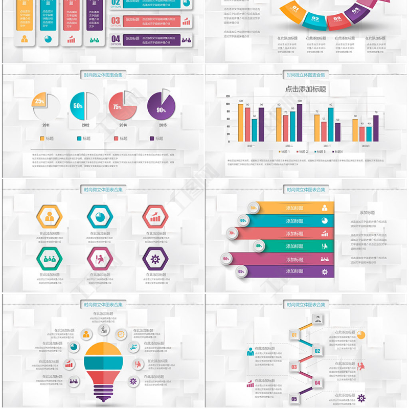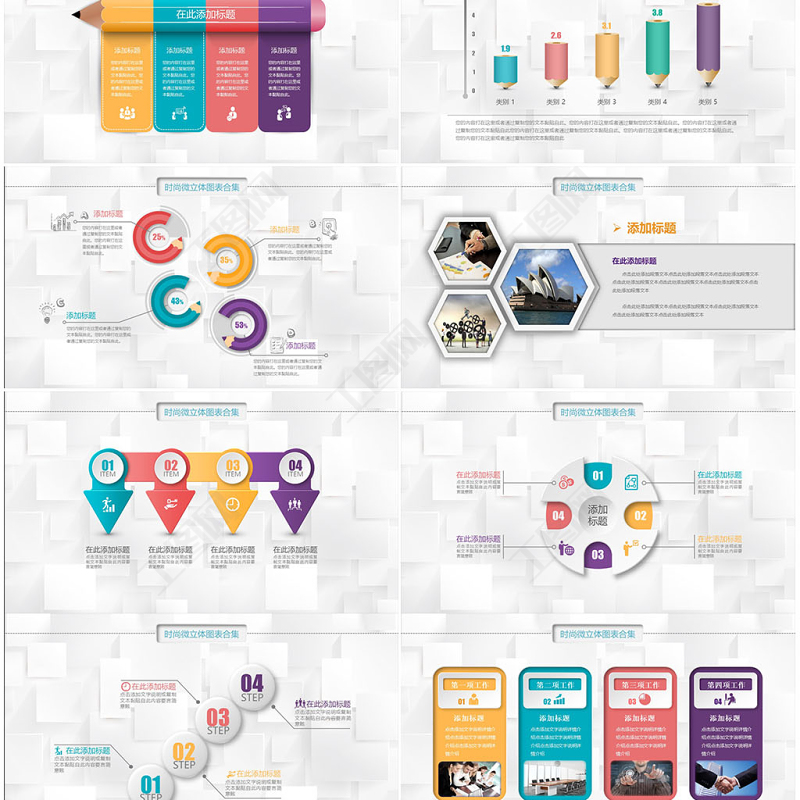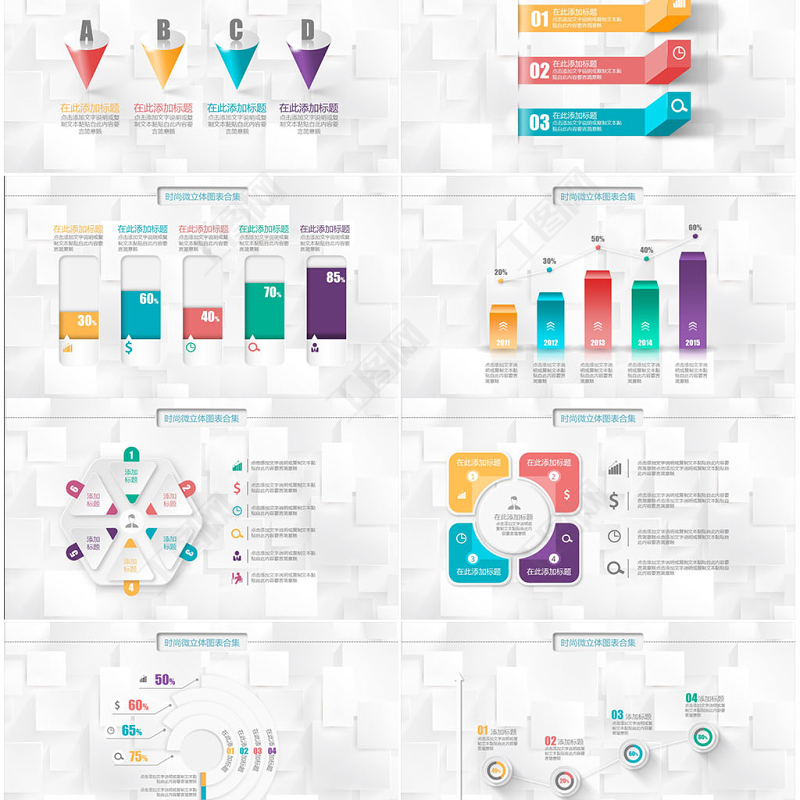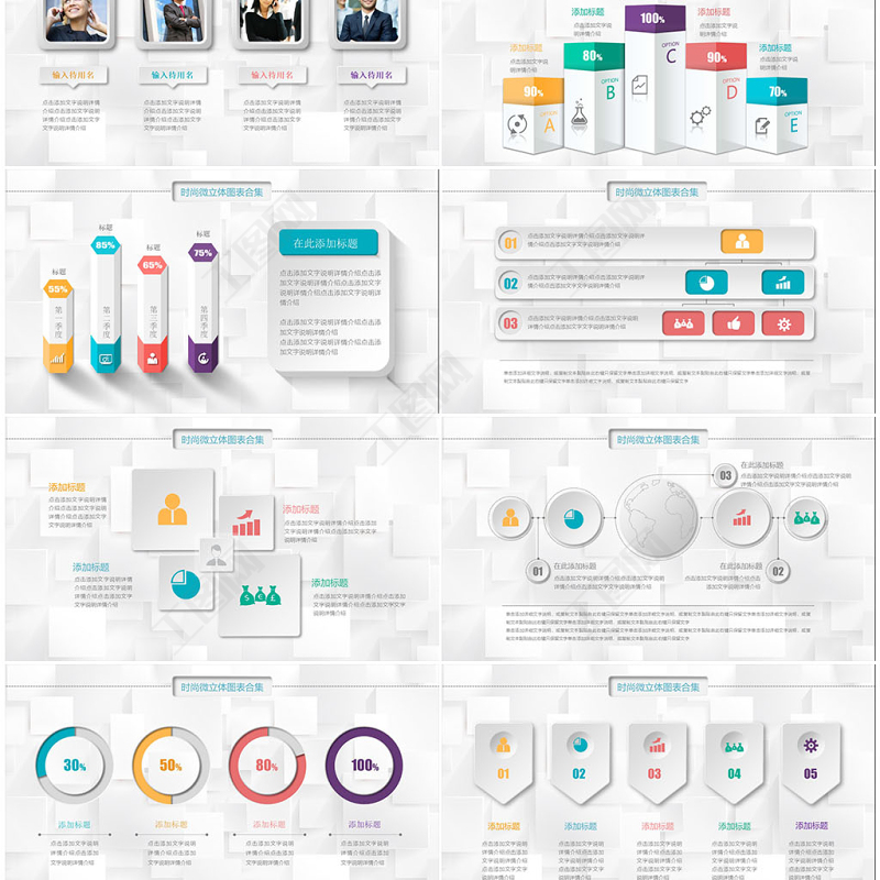 精美微粒體PPT圖表素材模板年終工作總結(jié)商務(wù)匯報立體數(shù)據(jù)分析圖