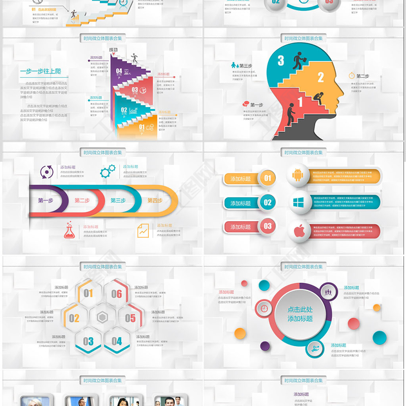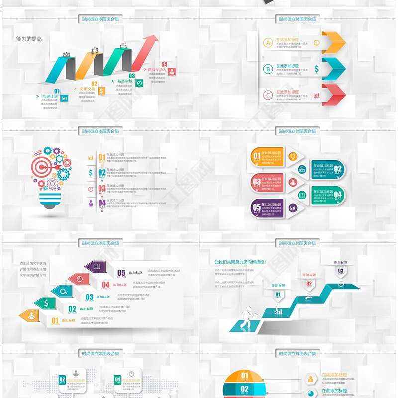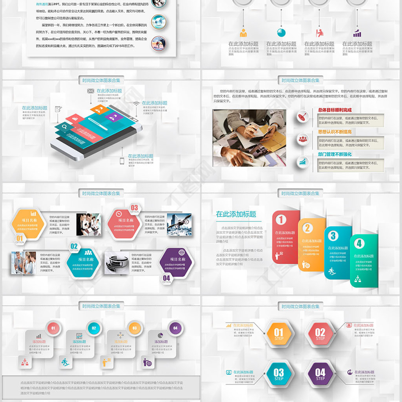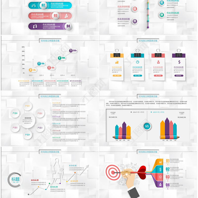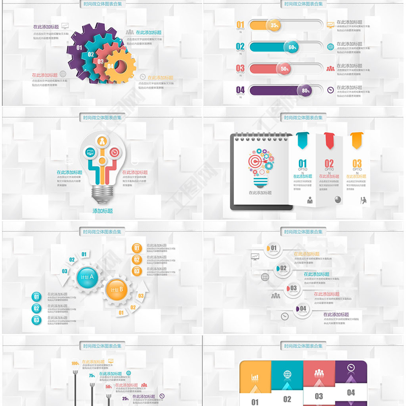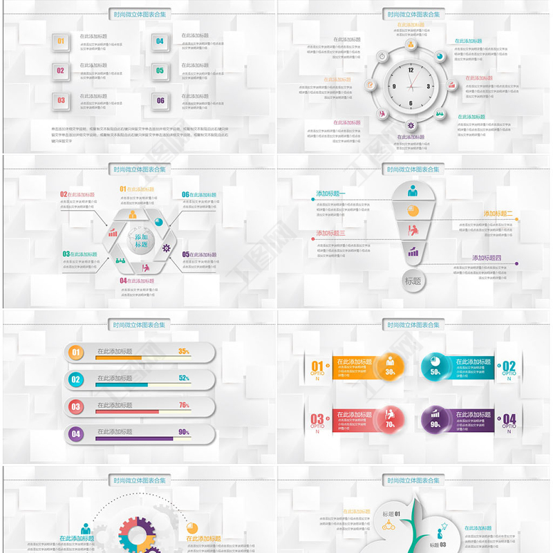 精美微粒體PPT圖表素材模板年終工作總結(jié)商務(wù)匯報立體數(shù)據(jù)分析圖