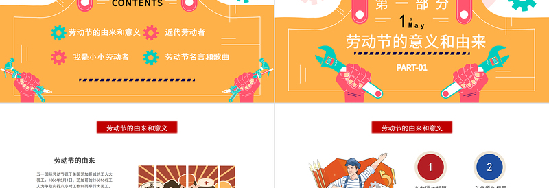 2022勞動最光榮PPT創意卡通風五一勞動節節日介紹課件模板