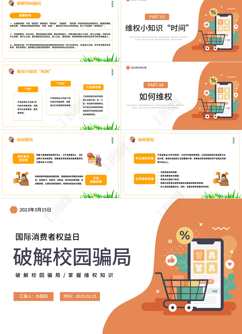 工圖網提供2023國際消費者權益日PPT卡通風破解校園騙局掌握維權知識課件模板供會員免費下載。更多精彩黨課PPT素材,盡在工圖網。
