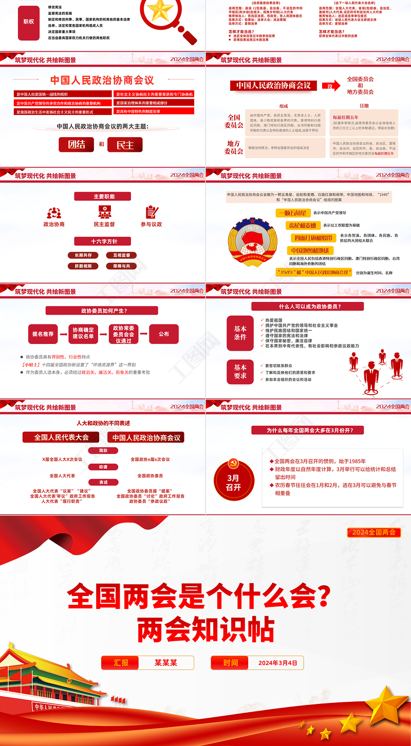 工圖網(wǎng)提供2024兩會知識帖PPT簡潔大氣兩會是個什么會兩會知識手冊課件供會員免費下載。更多精彩黨課PPT素材,盡在工圖網(wǎng)。