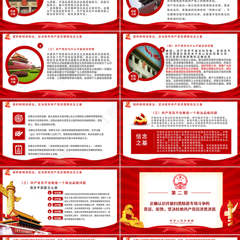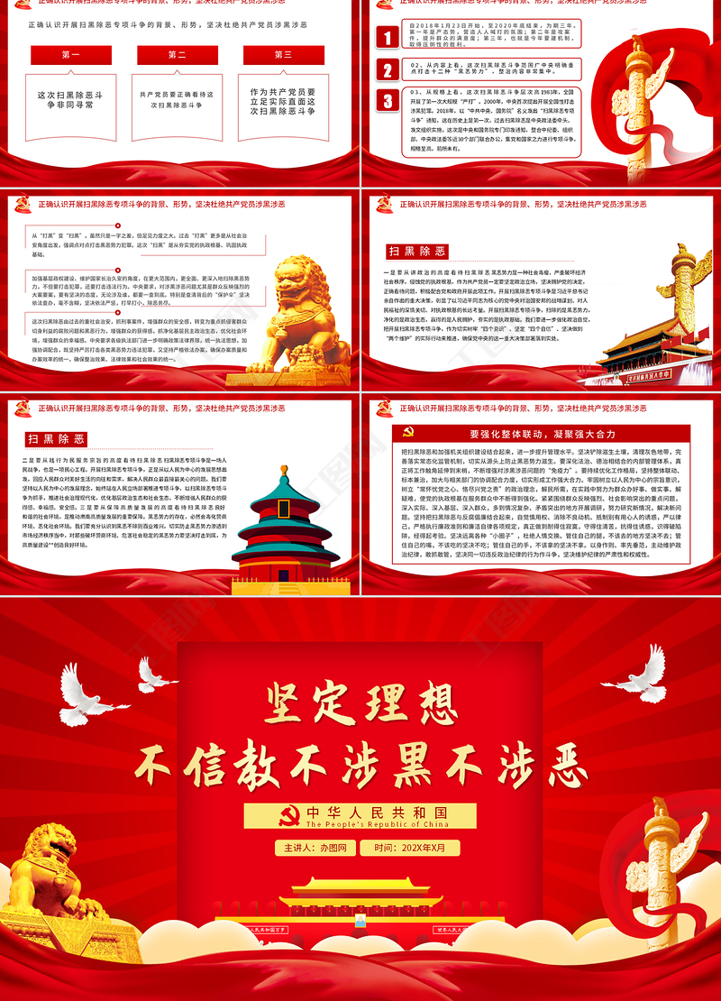 工圖網提供黨員堅定理想不信教不涉黑涉惡主題PPT模板供會員免費下載。更多精彩黨課PPT素材,盡在工圖網。