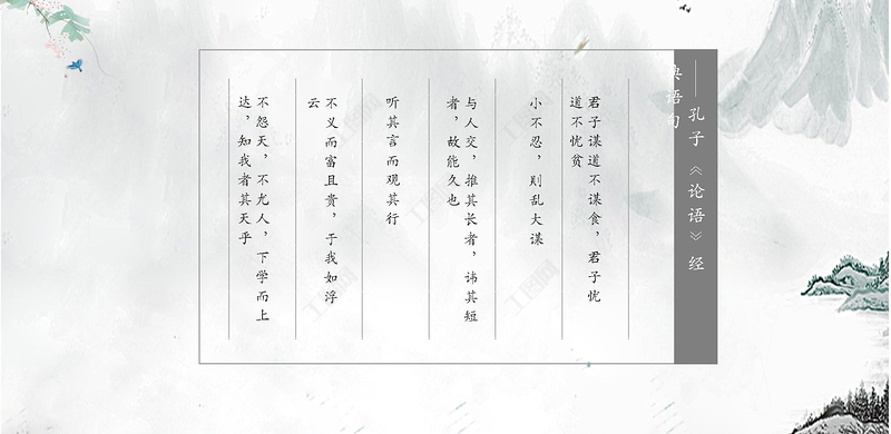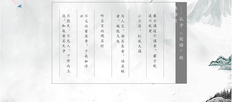 肆論語經典語句賞析此模板適用于中國風、傳統文化及相關類別演示,扁平化風格,顏色清新舒適,版式簡潔明了,內頁延續封面,使整個PPT統一一致。